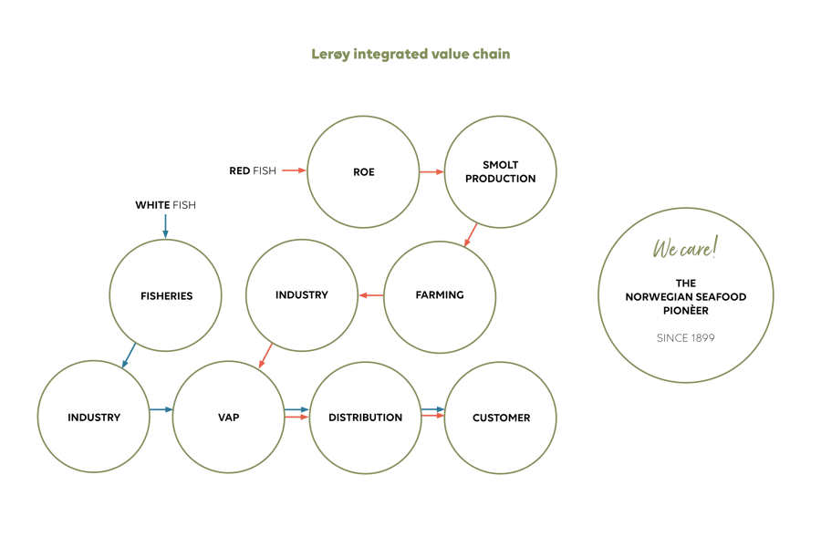 One paramount element of Lerøy Seafood Group’s strategy is to be a fully integrated supplier of the Group’s key products – Atlantic salmon, trout and whitefish – and business is currently operated via a number of subsidiaries in Norway and abroad. The Group views its operations as regional with a global perspective. The Group aims to be an enterprise with local roots in communities where it has operations, thereby contributing to all local communities irrespective of region and nationality.