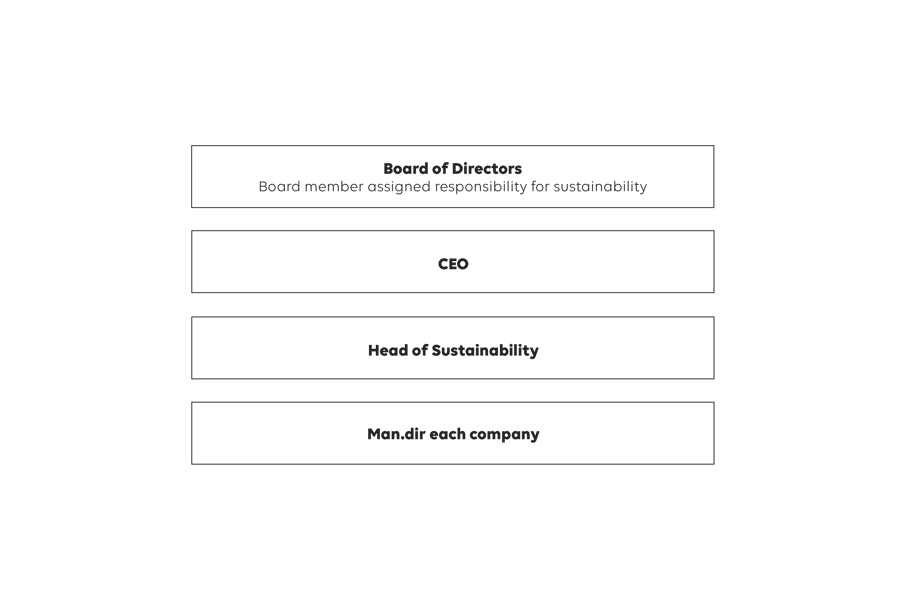 The management at different levels in the organization has functional descriptions that contain different goals, including goals for sustainability. Goal achievement contributes to the payment of bonuses.