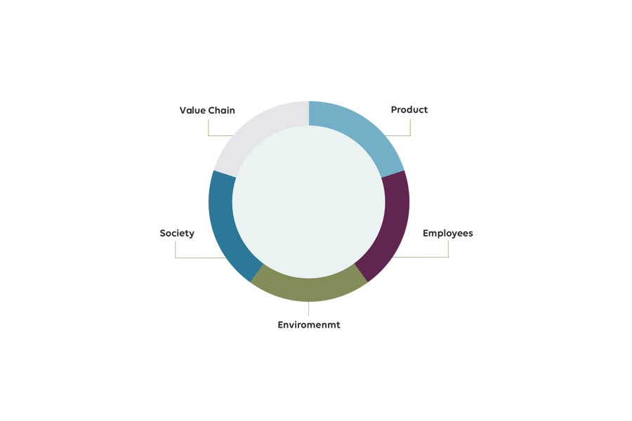 A materiality assessment was performed in 2015, involving interviews of in-house and external stakeholders. The assessment concluded that our sustainability reports should focus on five main areas: product, employees, environment, society and value chain. These areas will therefore receive particular focus in the company’s GRI and sustainability reports.