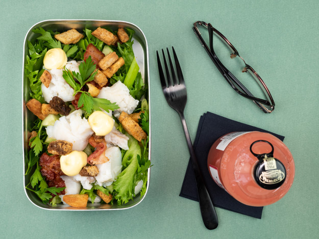 Denne salaten med torsk og bacon har masse smak og metter lenge. Perfekt for matpakken!