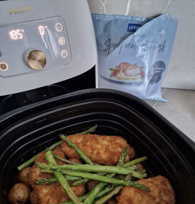 – Fisk er veldig raskt og enkelt å tilberede i airfryeren. Det gjelder uansett om den er fersk eller frossen. Det er mange som skryter av resultatene når de lager fisk i airfryeren. Om du tilbereder laks eller ørret med skinn, får fisken en sprø skorpe, samtidig som selve fisken blir saftig.
