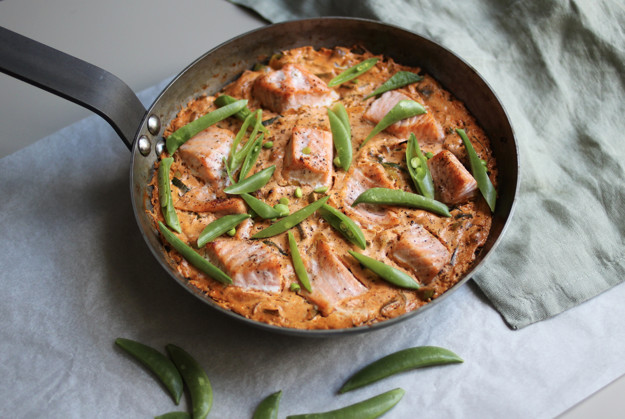 1. Denne lakseformen med pesto, rømme og grønnsaker er både en fest for øynene og det kroppen din trenger etter du har gitt alt på trening. Her legger du til det tilbehøret som frister mest, Dale anbefaler fullkornsris, potet eller pasta.
