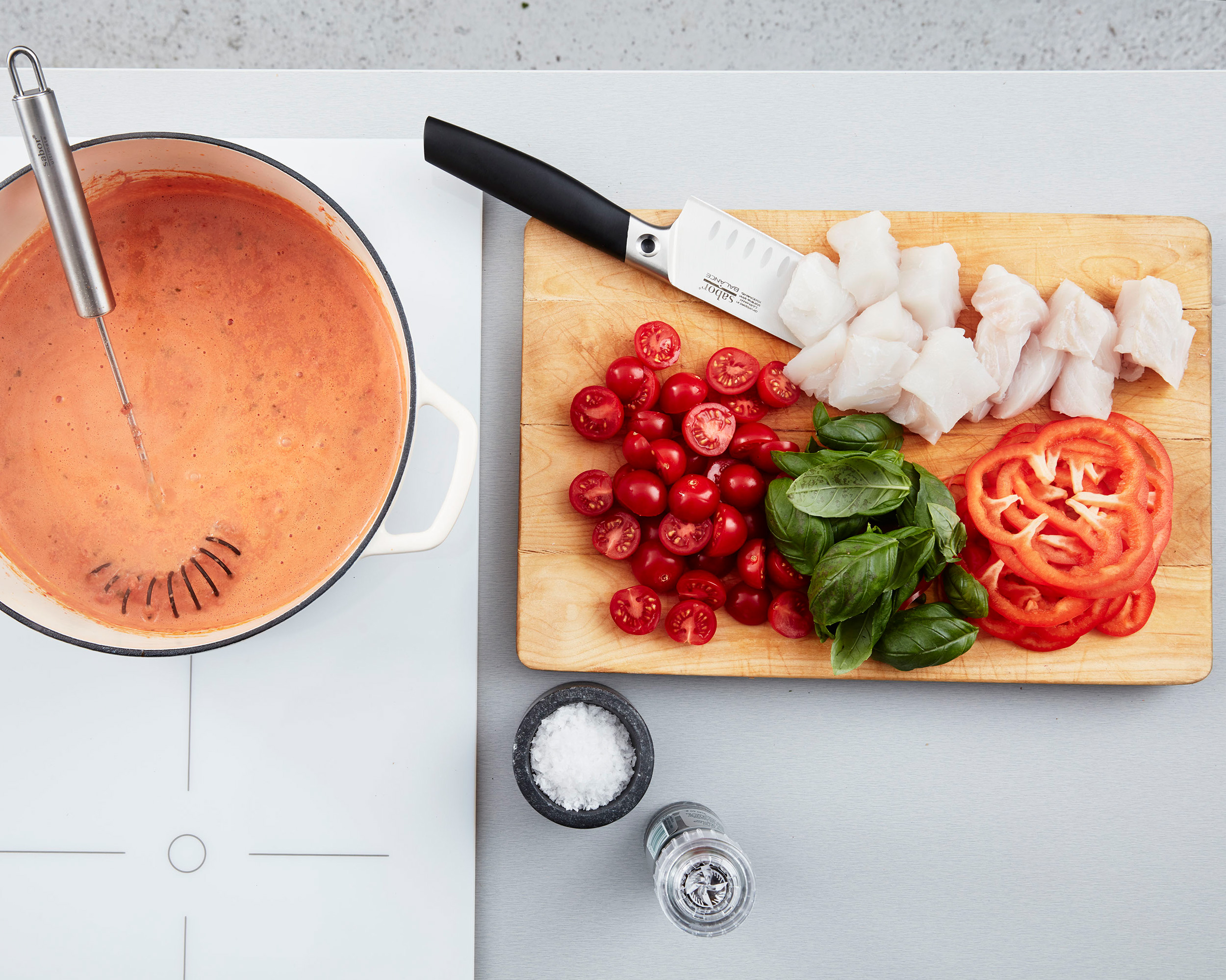 Og hvis du ikke er av typen som orker å lese oppskriften fra topp til bunn før du begynner, kan en god regel være at du alltid starter med å kutte opp alt du ser skal deles i biter. Da unngår du stressende situasjoner hvor du plutselig må gjøre flere ting samtidig.