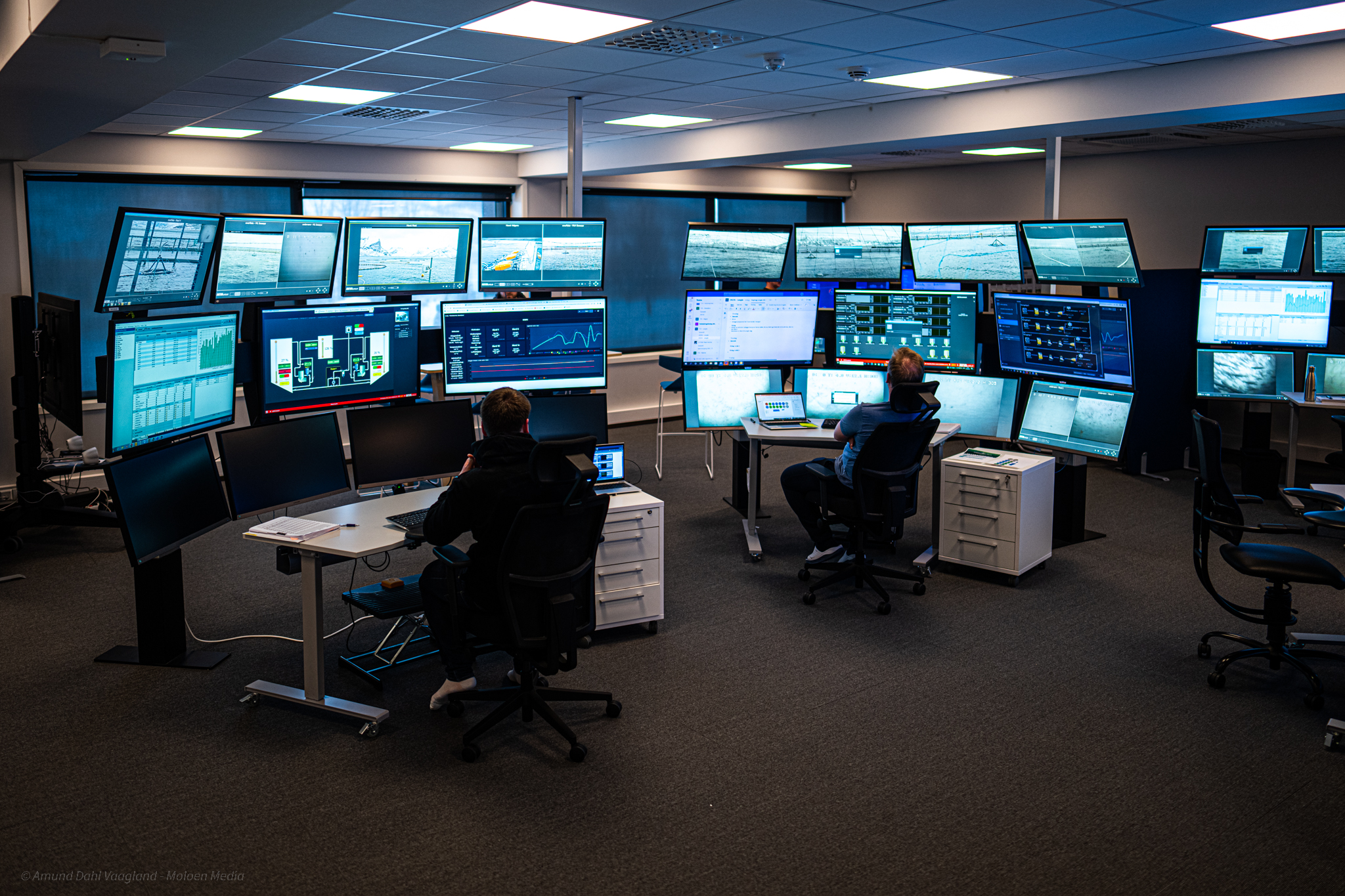 I merdene er det plassert flere kamera som er tilgjengelig hele døgnet. Bildene blir direktesendt til tilvekstsentrene, hvor driftsteknikerne til enhver tid kan styre for å se detaljert informasjon fra anlegget, i merdene og i området rundt. Hver stasjon har minimum 6 stykk 38-tommer skjermer som gir den informasjonen som trengs for å fôre fisken optimalt. Ofte deles skjermen opp i flere bilder for å følge med på alle merdene som fôres samtidig. Det er altså ikke lite informasjon å holde styr på.