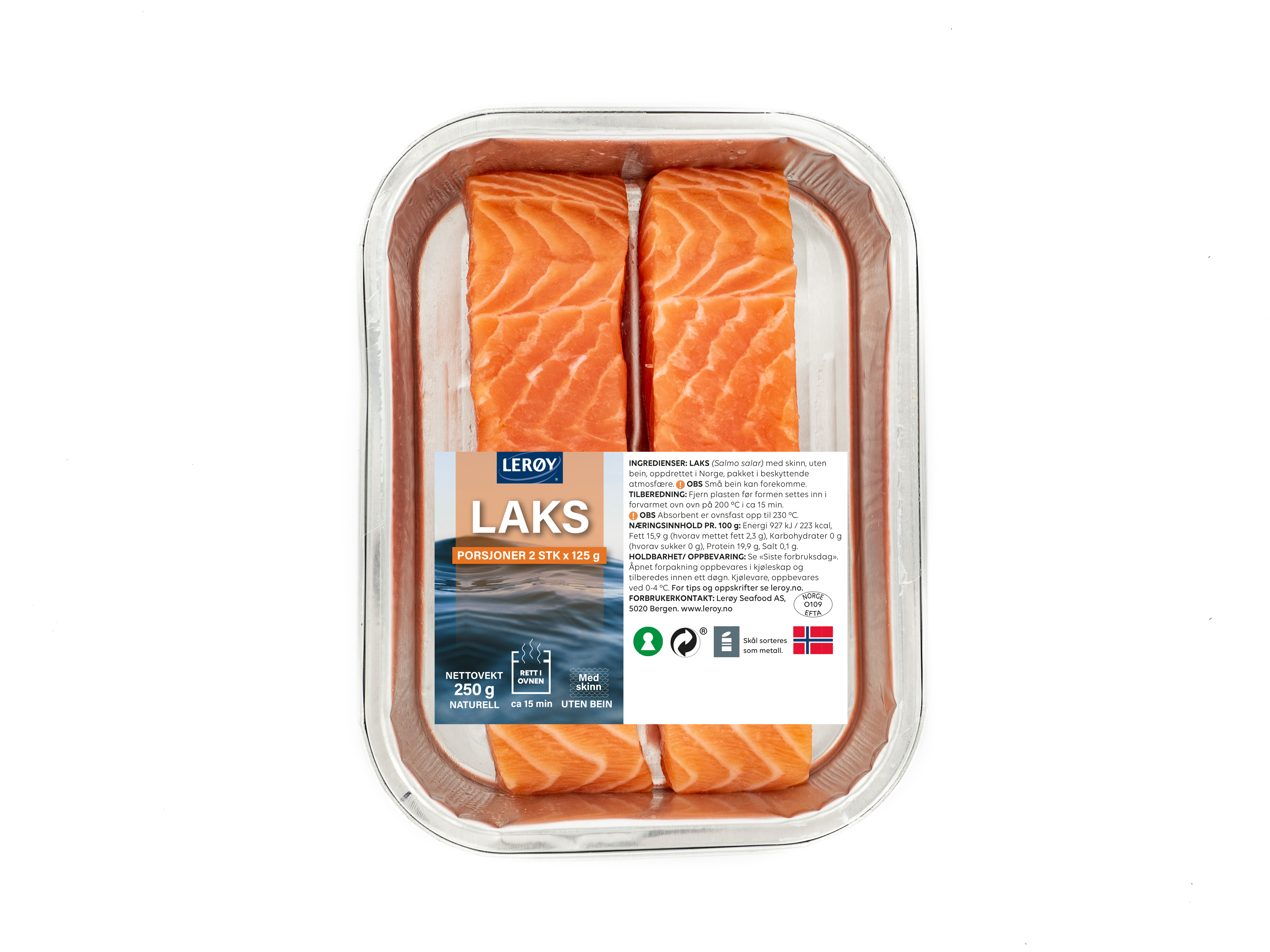 Laksefilet naturell med skinn 2x125g