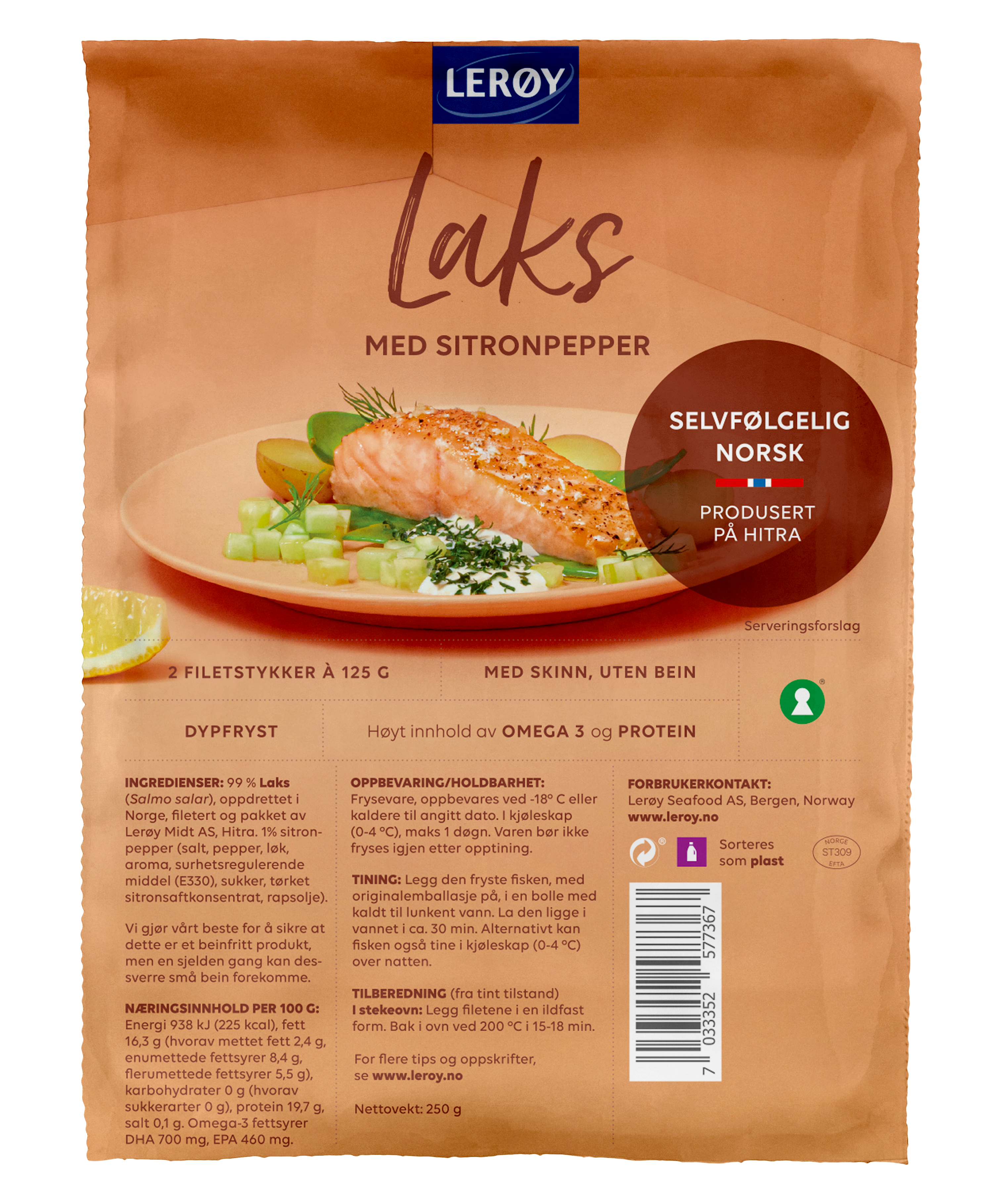 Frys - Laks med sitronpepper 2x125g