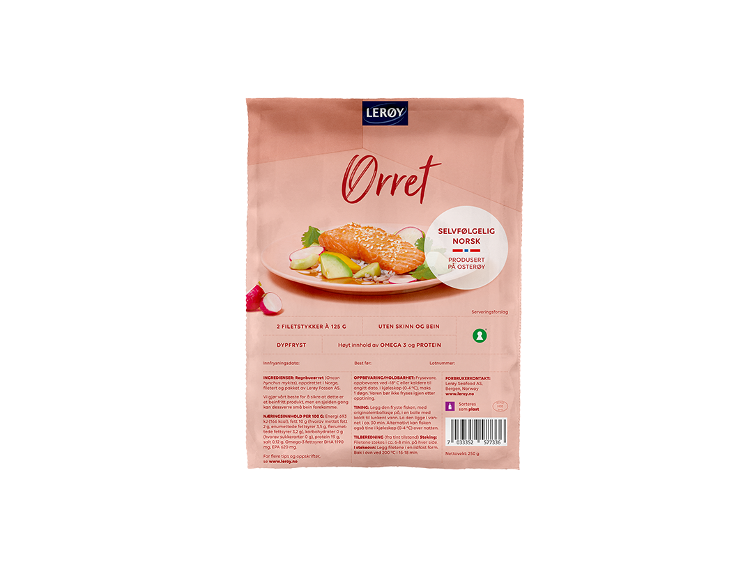 Lerøy ørretfilet naturell med skinn 2x125g