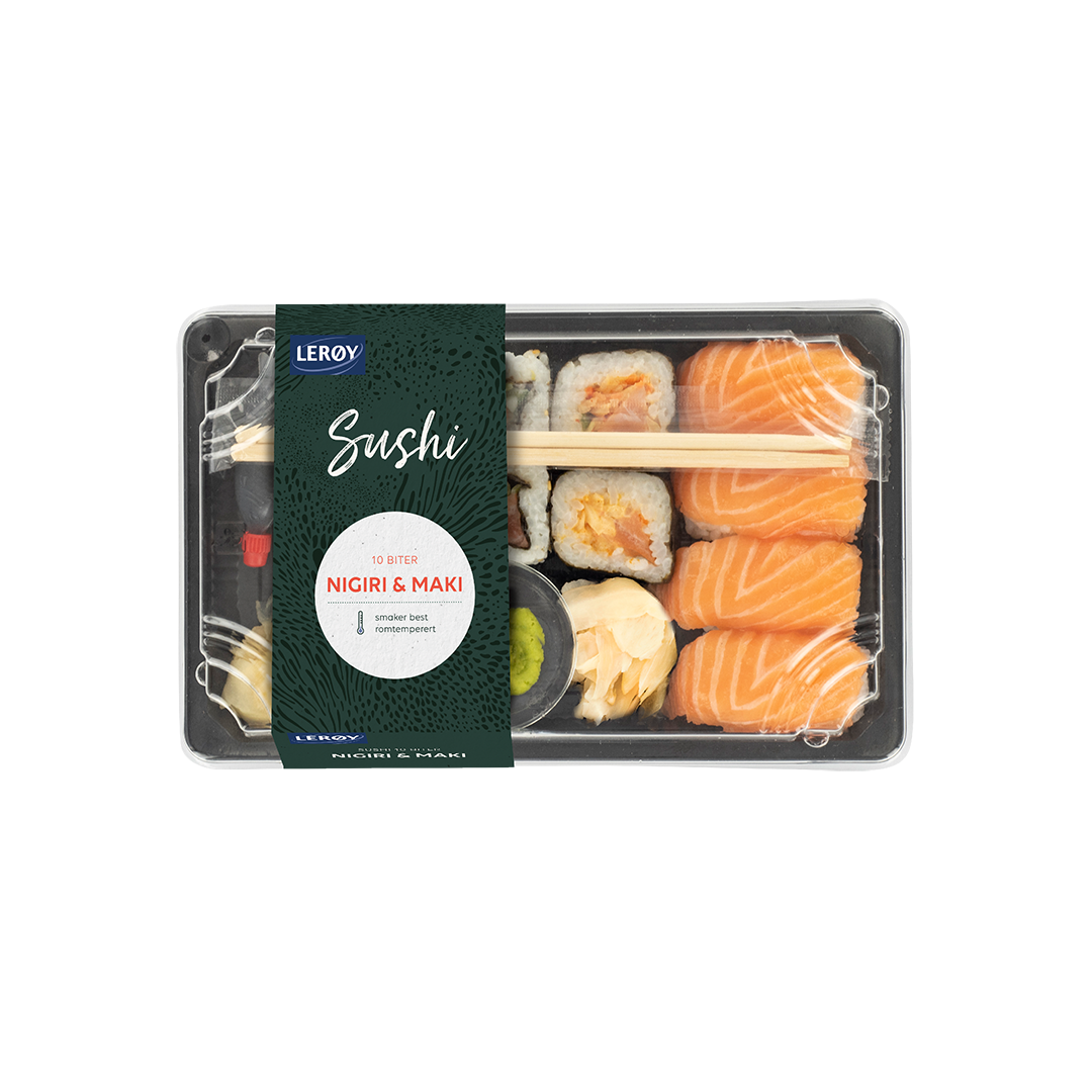 Sushi 10 biter nigiri og maki
